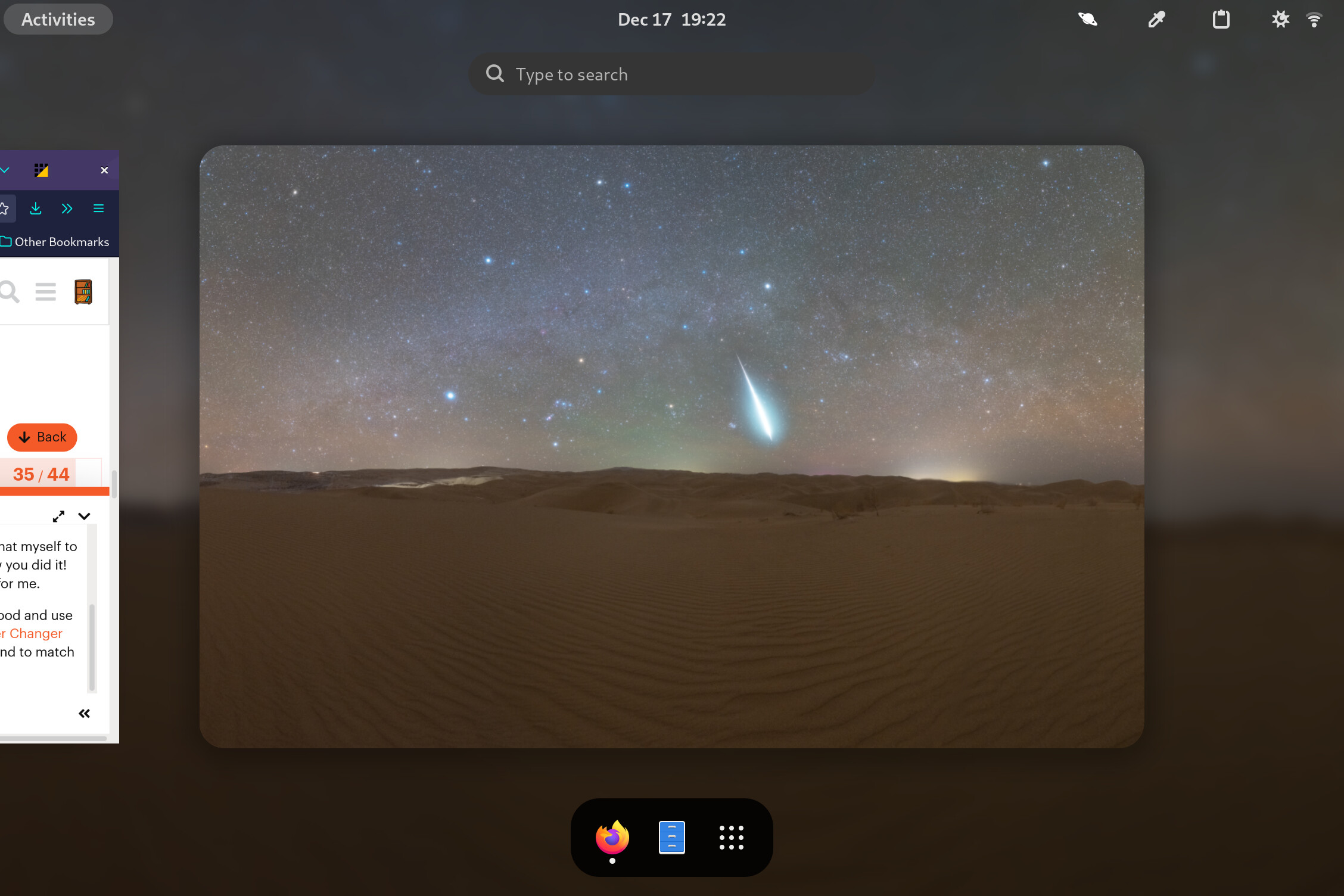 For other space nerds who are looking for something good and use GNOME, I highly recommend the NASA APOD Wallpaper Changer extension, which automatically switches your background to match the NASA Astronomy Picture of the Day.
