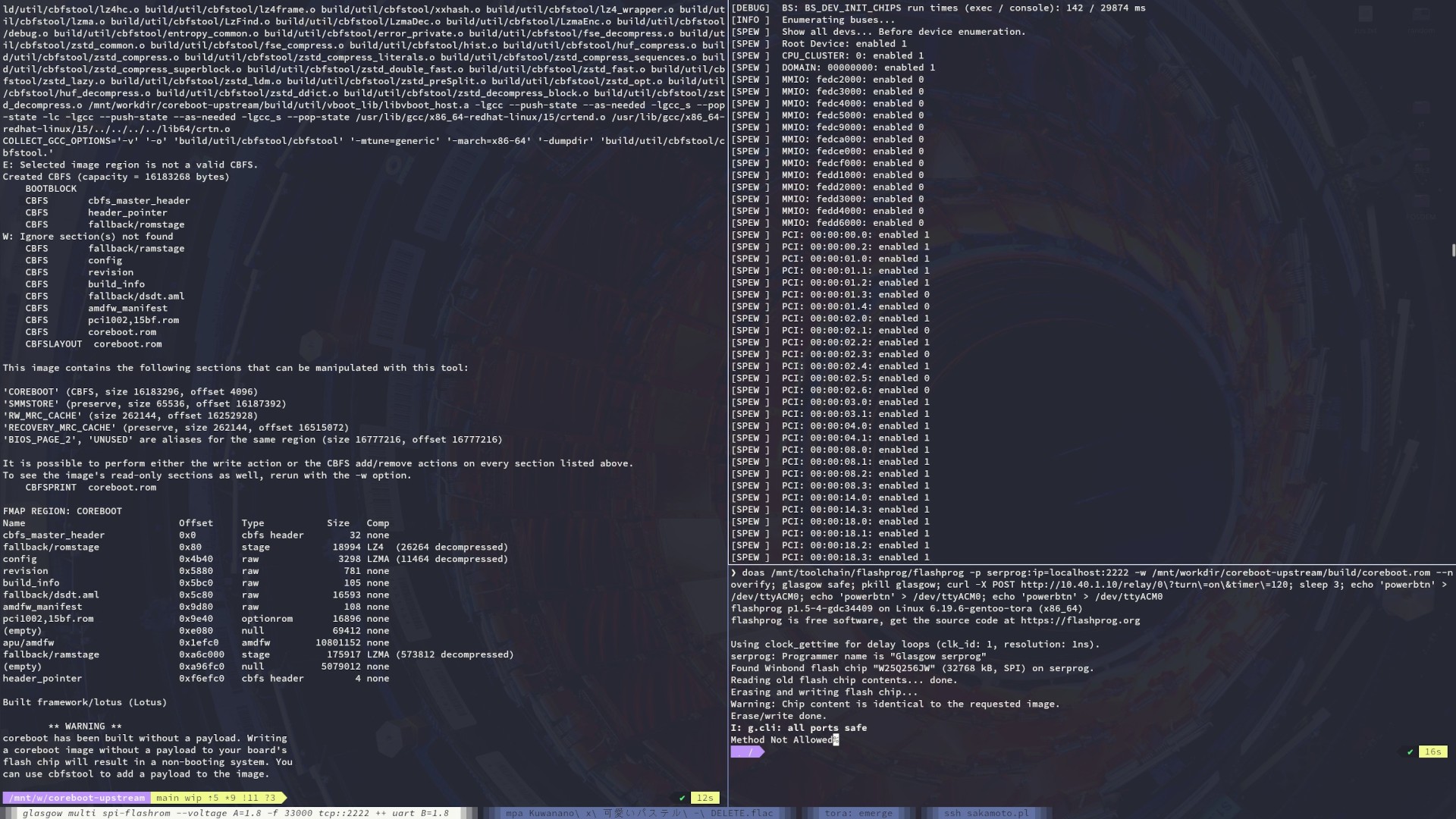 Payload (we’re not at this point yet): For now it will be only EDK2. Modern AMD iGPUs don’t support legacy BIOSes anymore, OpenSIL ships with GOP driver that needs to be added to the build. I’m planning on reverse-engineering it though and using LinuxBoot should be possible anyway as Linux kernel can perform gfxinit on it’s own).