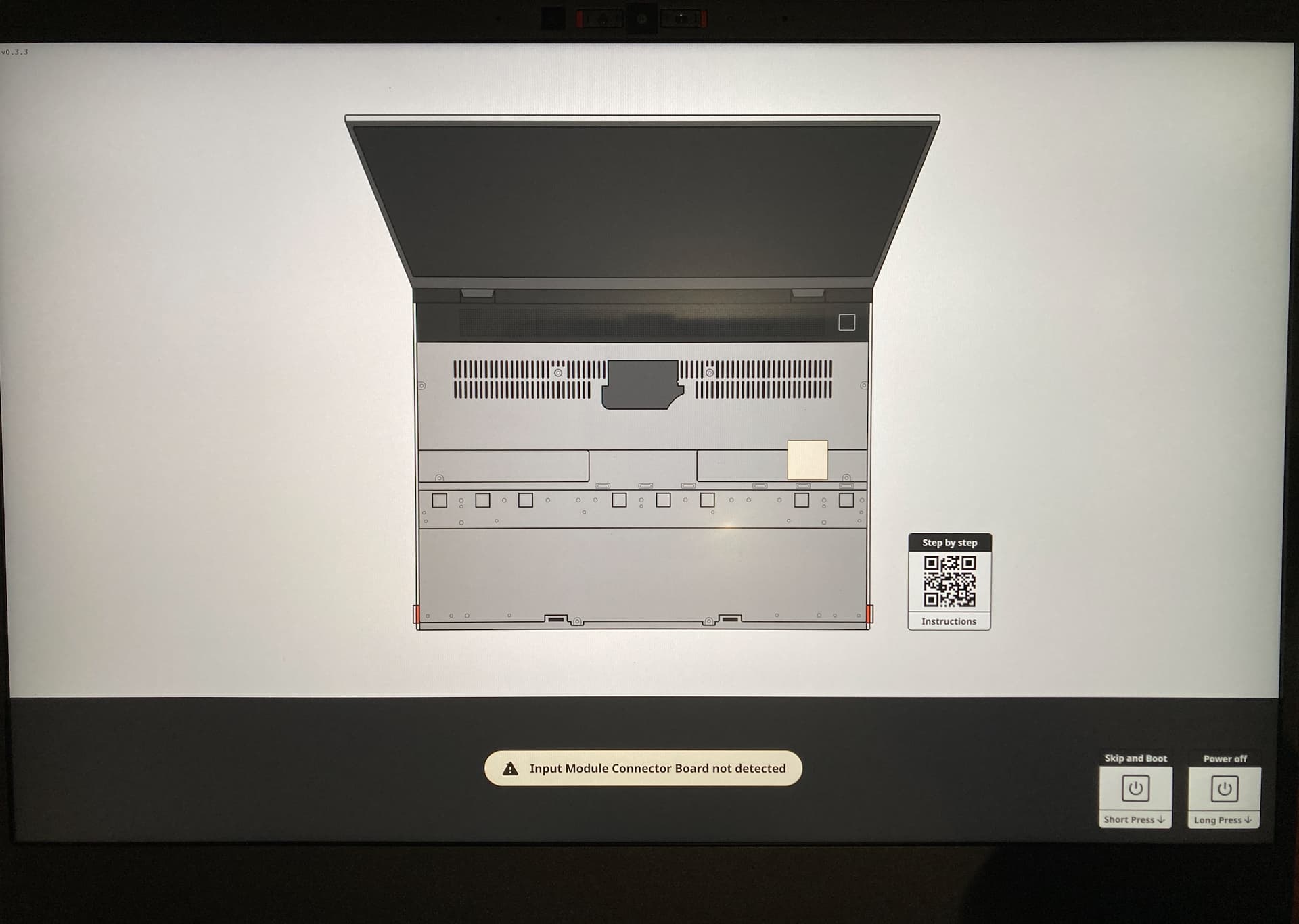 The laptop is stuck at : Input Module Connector Board not detected.