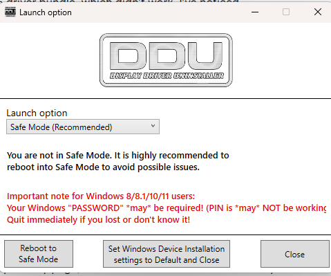 When running DDU, there is a menu that initally pops up. This makes it so windows doesn’t auto download bad drivers when it reconnects later.