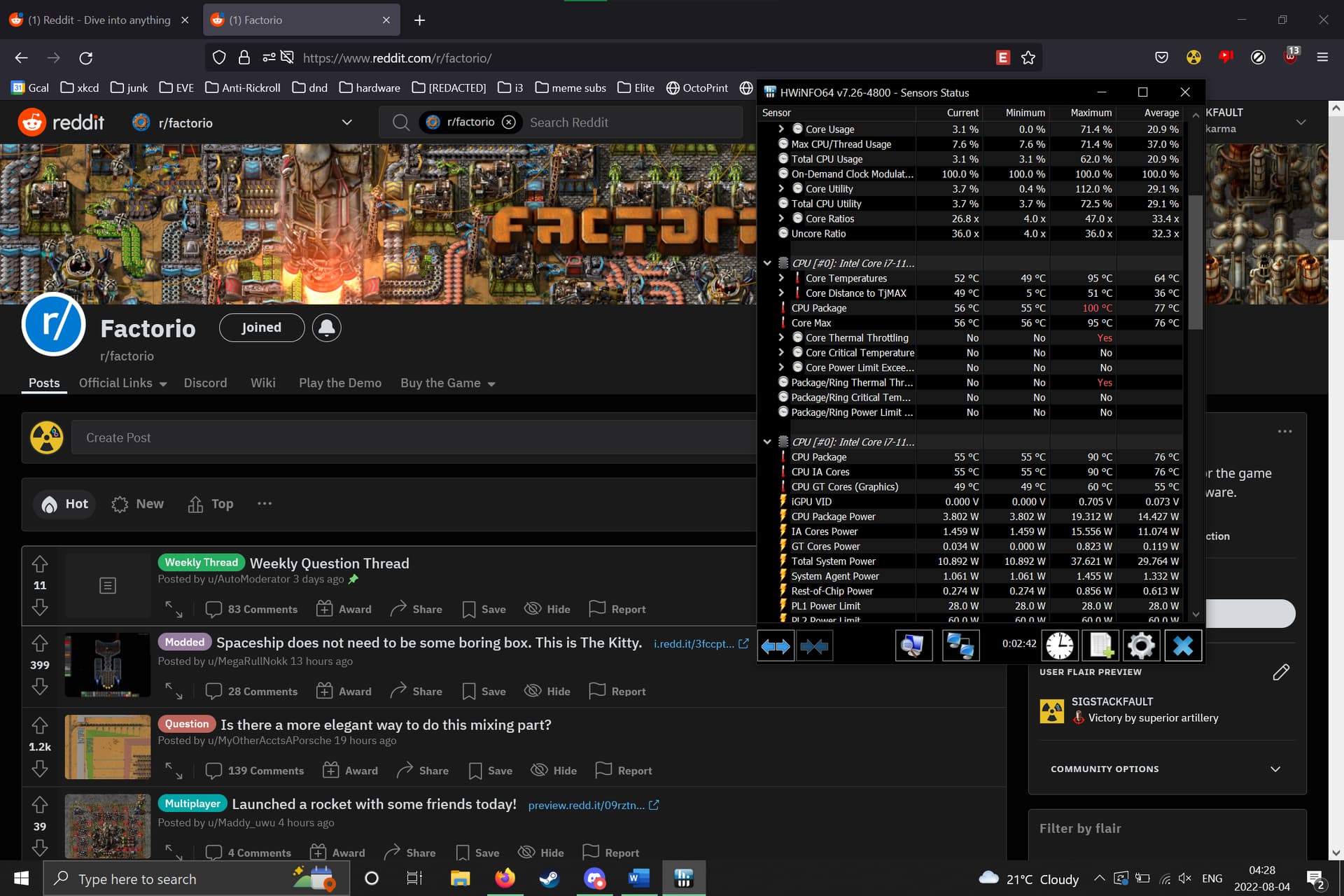 I hit the “reset min/max/average” button about 10 seconds before taking this screenshot. I’m not sure what the temp is but if the laptop was idling 12 degrees above ambient it would be 38 degrees and it’s definitely not that hot. Ambient is 25 at most.