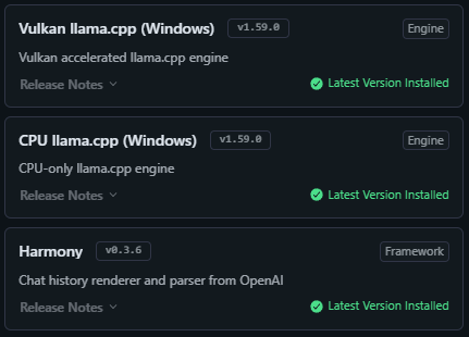A new LM runtime was made available (ROCm llama.cpp), which I installed. I also updated all other runtimes: